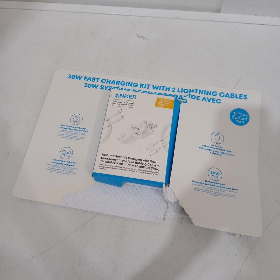 2PK Anker Charger Kit with USB-C to Lightning Cables ( FOR IPHONES 8-14 / SE ) - 30W, 6FT - white