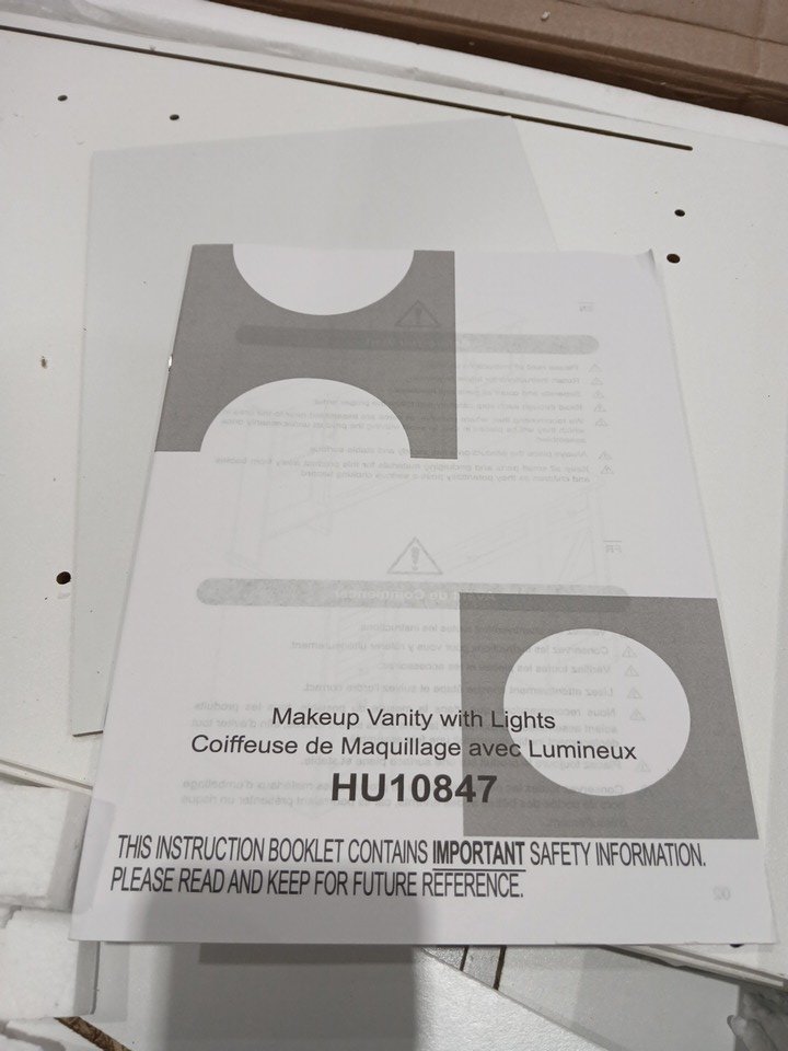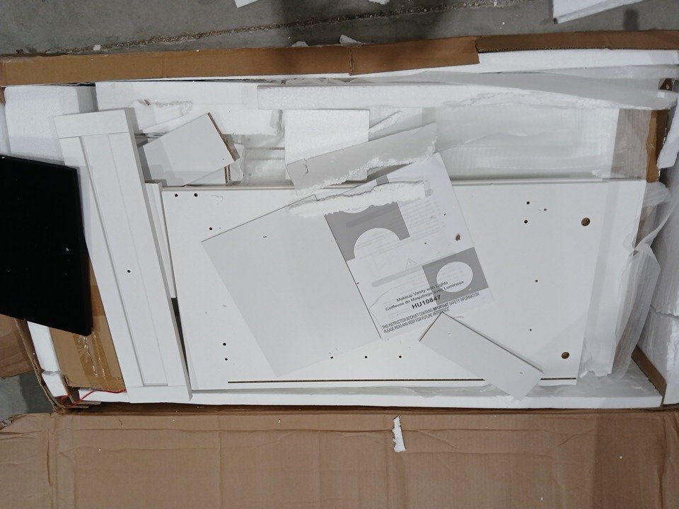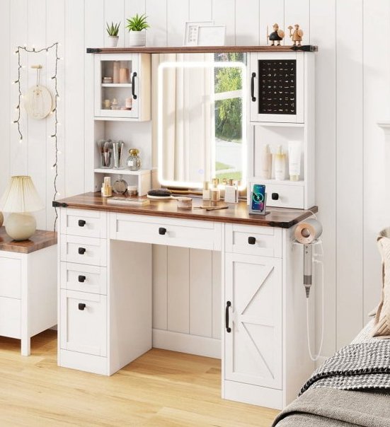 costway farmhouse vanity desk with lighted mirror - 44.5" x 16" x 57.5" - white/dark brown (model: hu10847us)