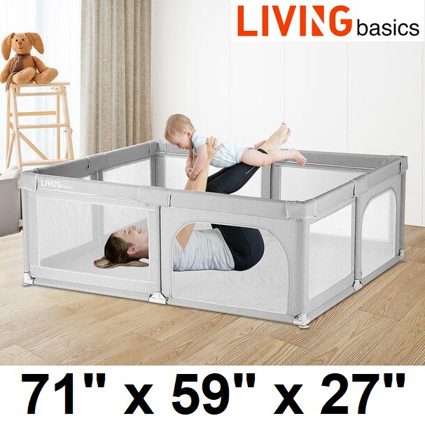 LIVINGBASICS BABY PLAYPEN ACTIVITY PLAYARD WITH DOOR - 71" x 59" x 27" - GREY (MODEL: LB-BPP-CO503-GREY)