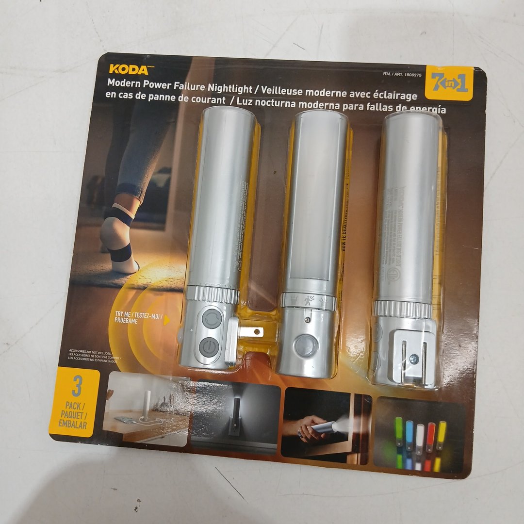 3PK KODA 7-IN-1 Modern Power Failure Night Light - Silver (Model: 1806275)