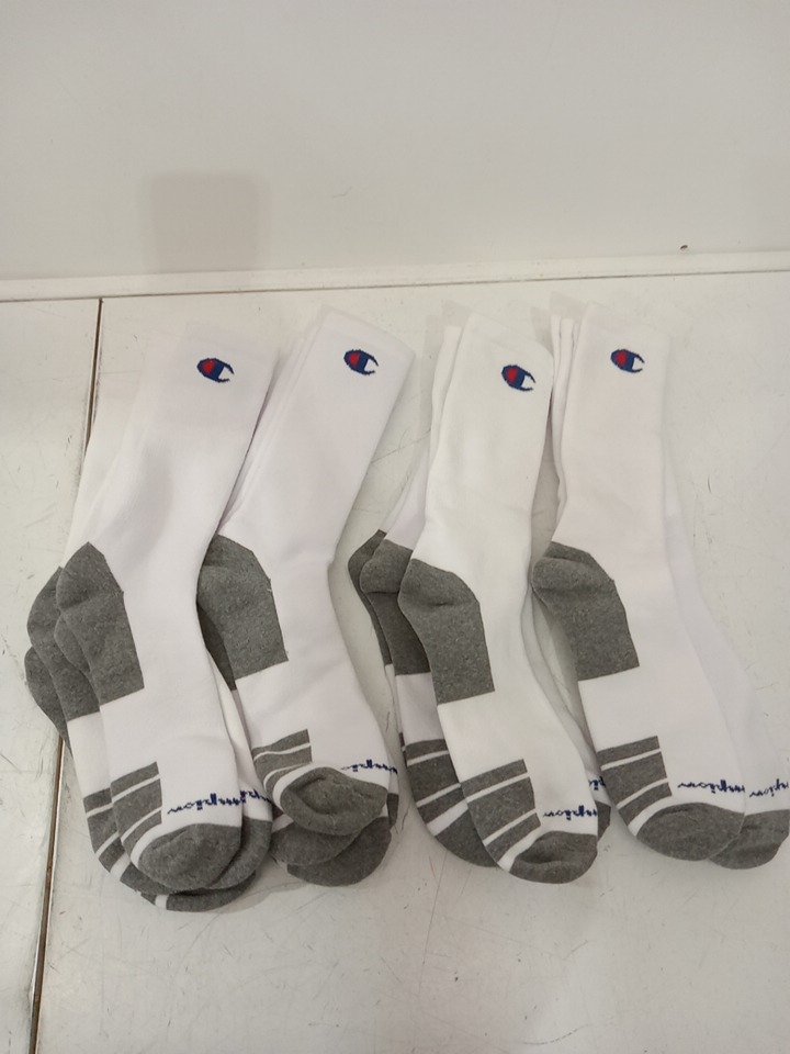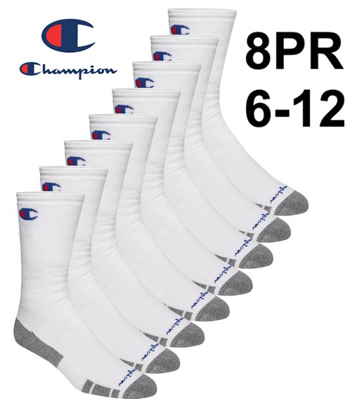 8PR MEN'S CHAMPION CREW SOCKS - 6-12 - WHITE