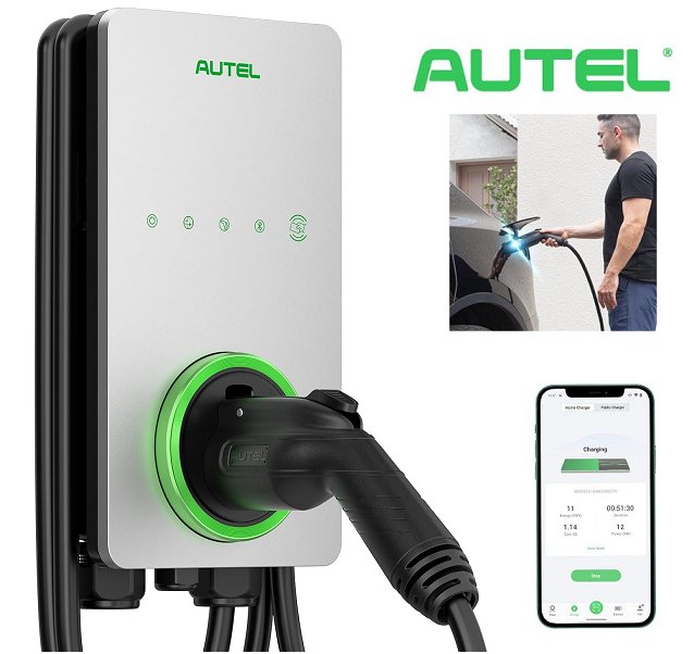 Autel maxicharger ac lite level 2 Home Smart Electric Vehicle (EV) Charger - up to 50A - 240V - Indoor/Outdoor Car Charging Station with 25Ft Cable - silver (model: maxi-us-ac-lw12)