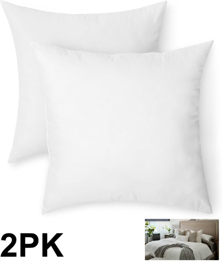 2PK AMAZONBASICS SOFT DENSITY DOWN ALTERNATIVE Euro PILLOWS - 26" x 26" - WHITE