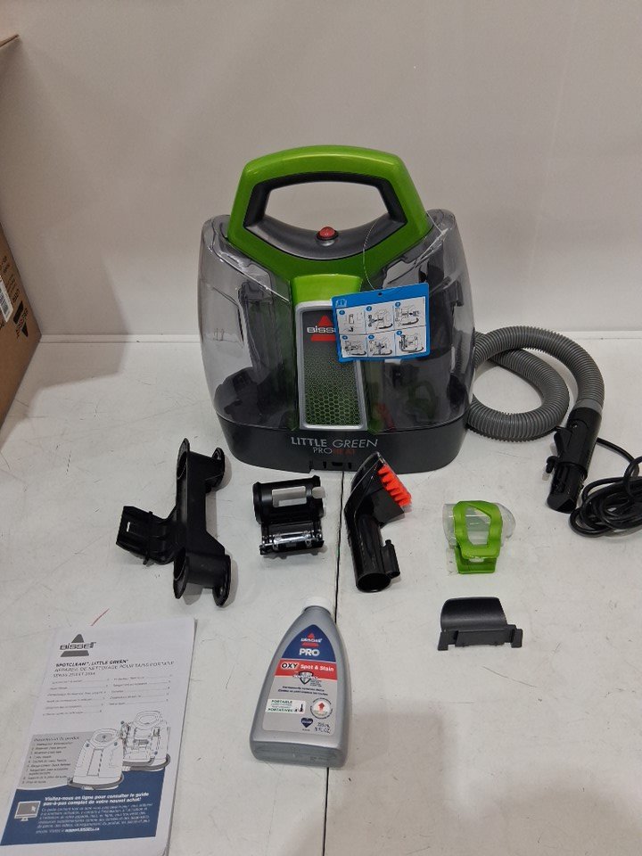 BISSELL LITTLE GREEN PROHEAT PORTABLE DEEP CLEANER/SPOT CLEANER WITH SELF-CLEANING HYDRORInSE TOOL - GREEN/GREY (MODEL: 2513B / 2513n)