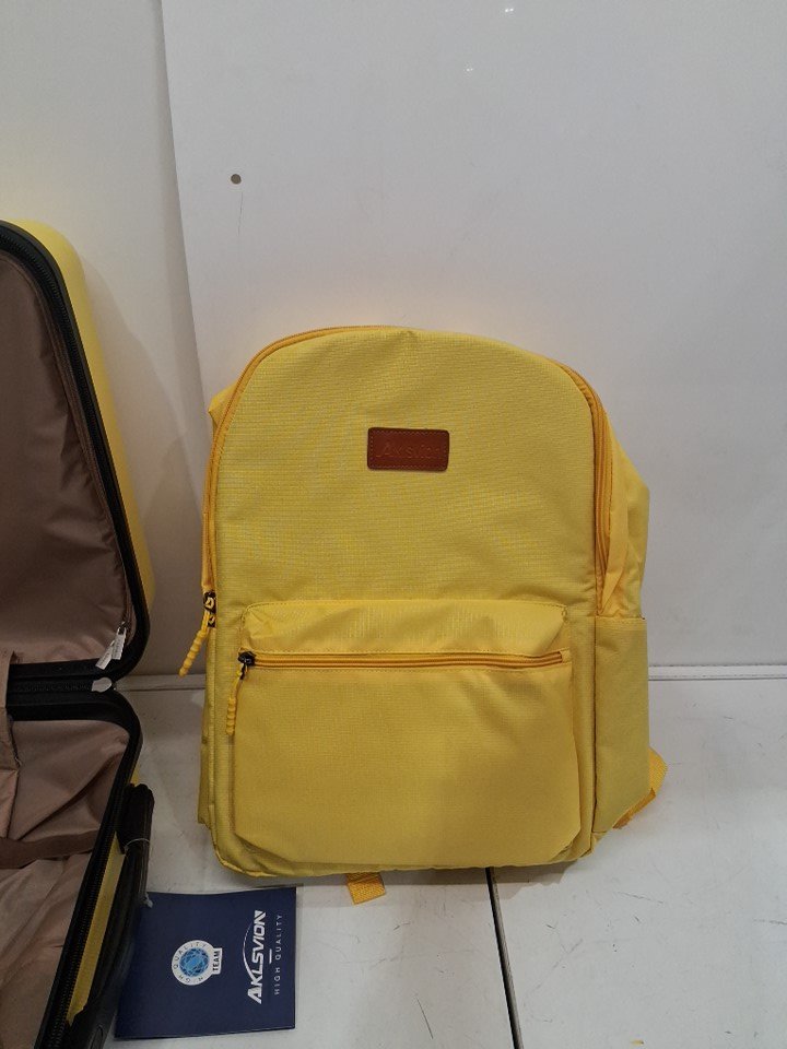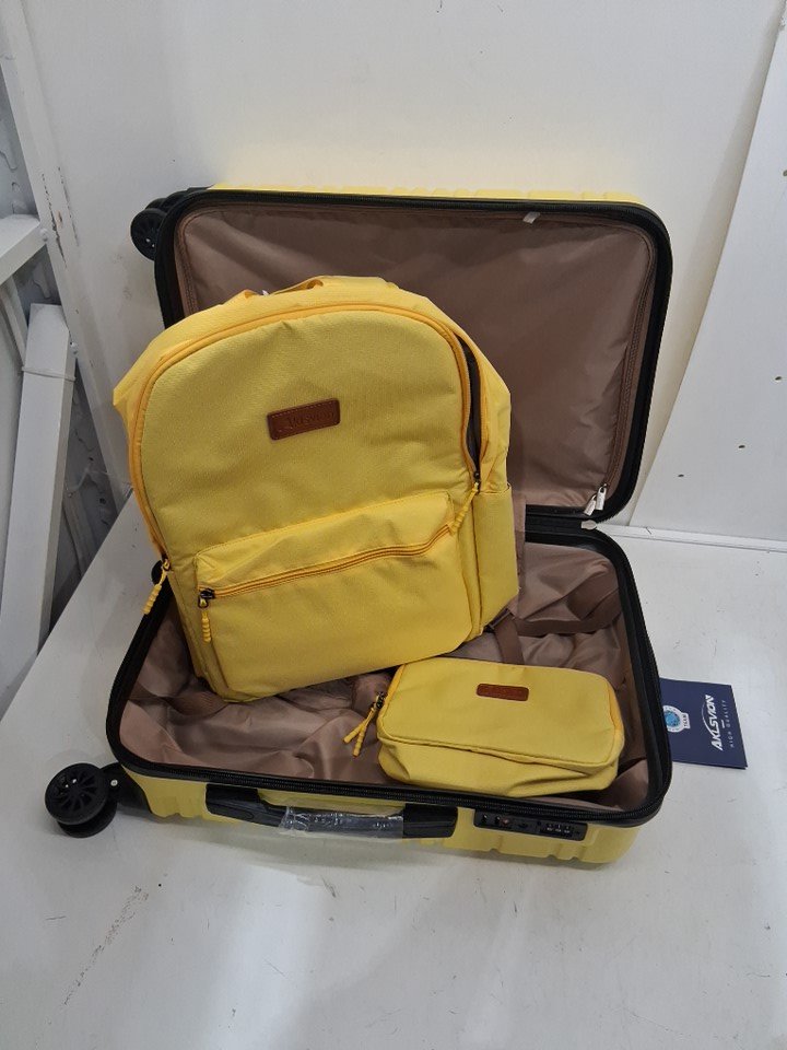 3pc aklsvion 20" durable carry-on luggage with travel backpack and toiletry bag - yellow (model: ak-02c)