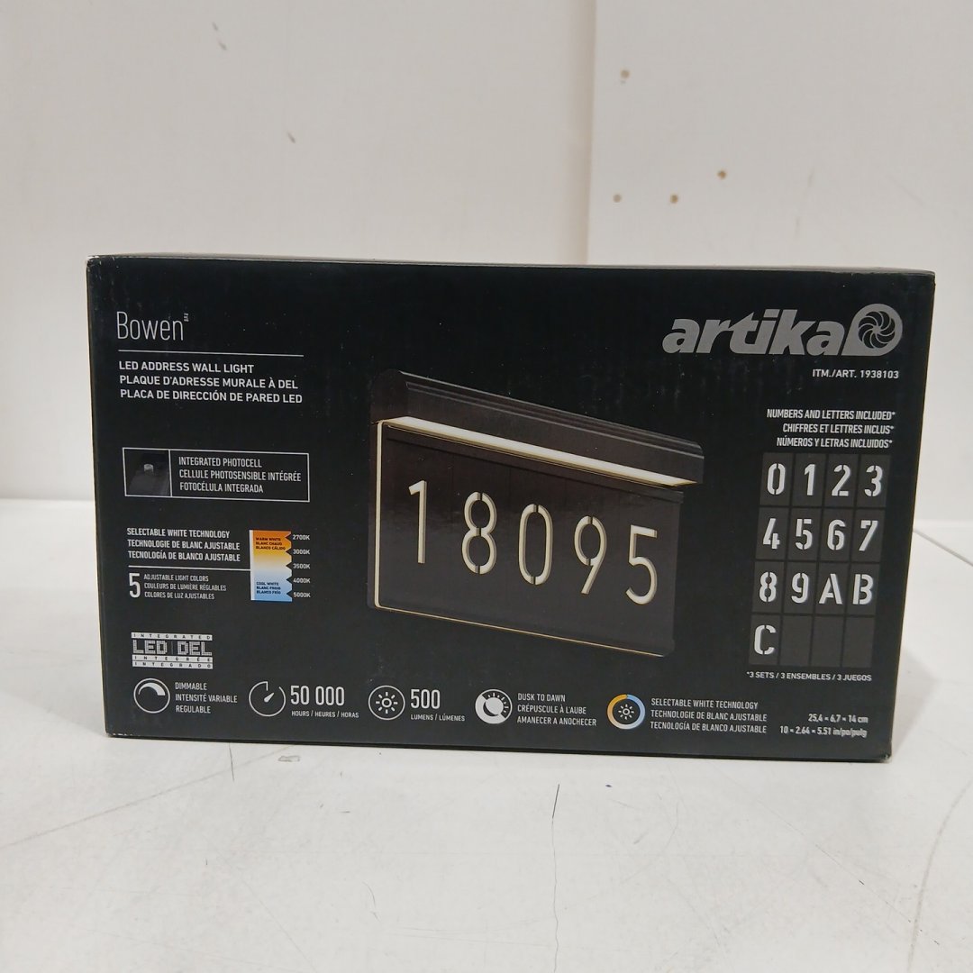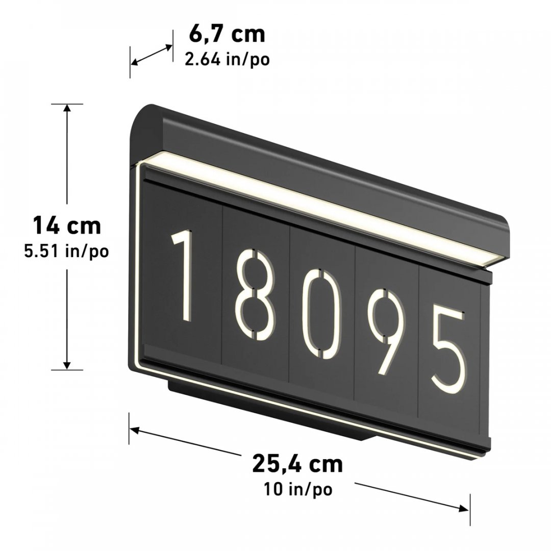 artika Bowen modern LED outdoor address wall light - 2700k-5000k - 10" x 5" - black/white (model: OUT-BOW5C-C1BL)
