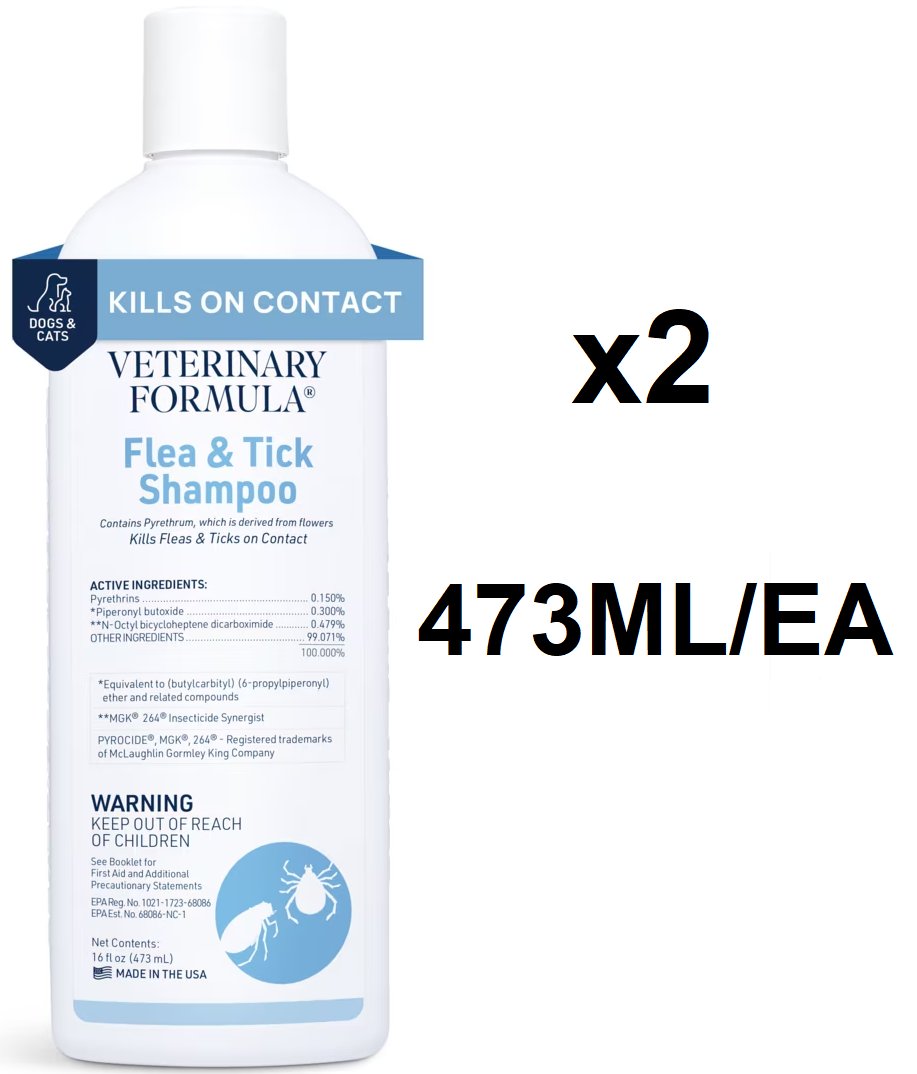 2 veterinary formula flea and tick shampoo for dogs and cats - kills fleas and ticks on contact - 473ml each