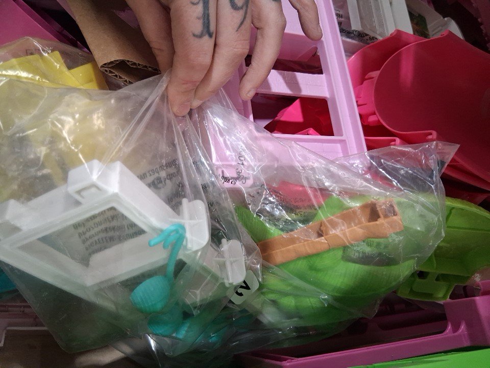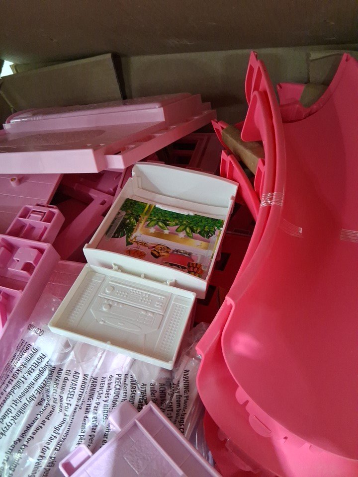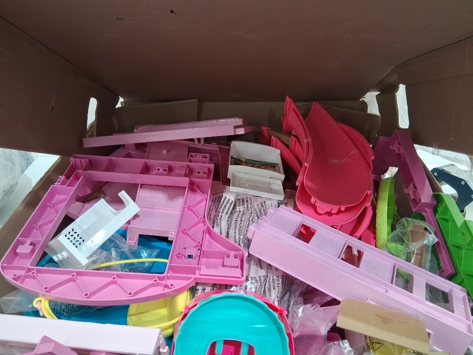 box arrived to our warehouse opened. likely happened during shipping. all pieced seem to be there. possibly miss small pieces. bags sealed and factory tape for packaging still intact. please see photos.