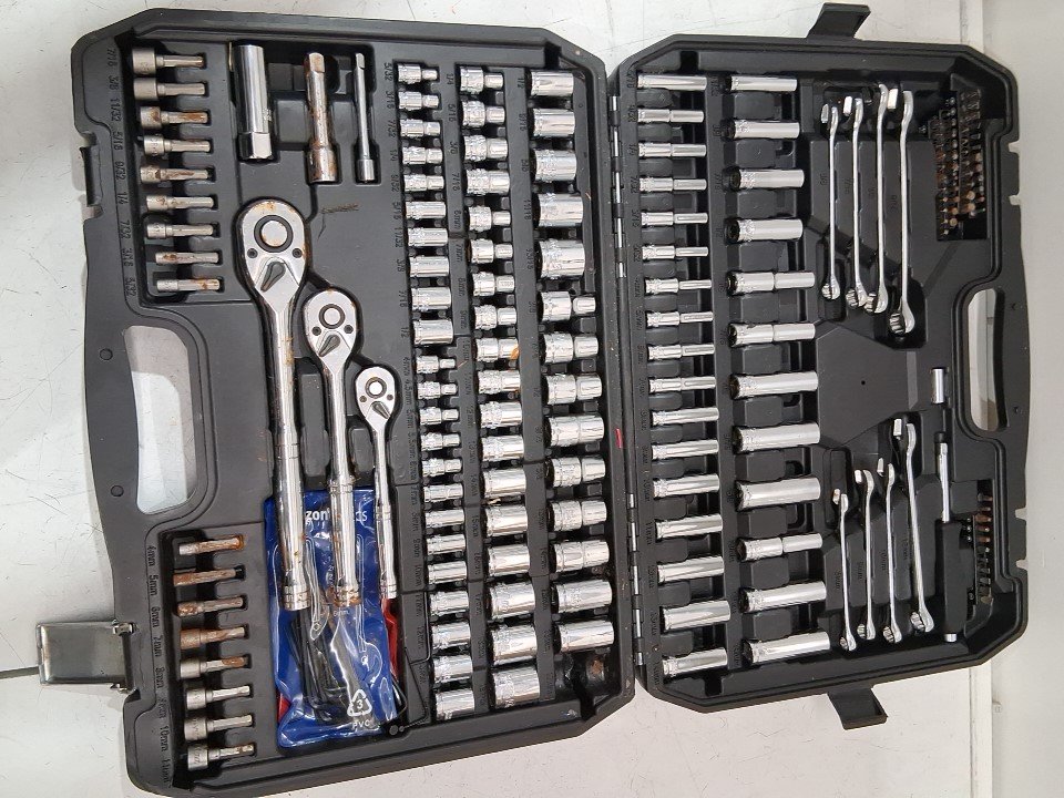 please note several pieces have rust spots on them, none of which appear to affect integrity or function the 17mm socket is missing