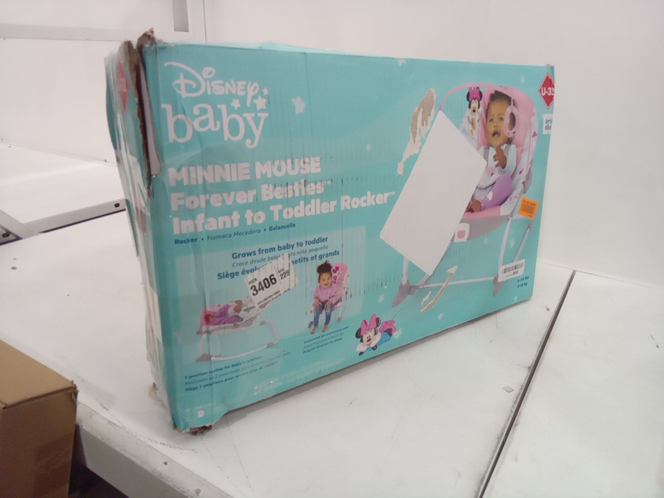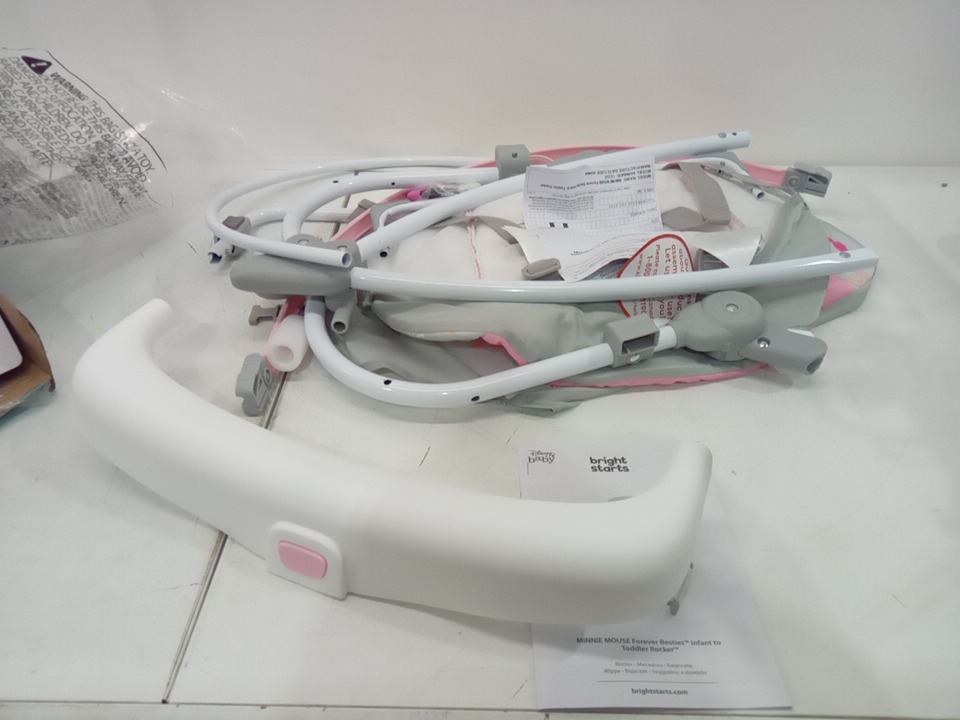 BRIGHT STARS DISNEY BABY MINNIE MOUSE INFANT TO TODDLER ROCKER - 0-30 MONTHS - 40LBS max - PINK/WHITE (MODEL:12209)