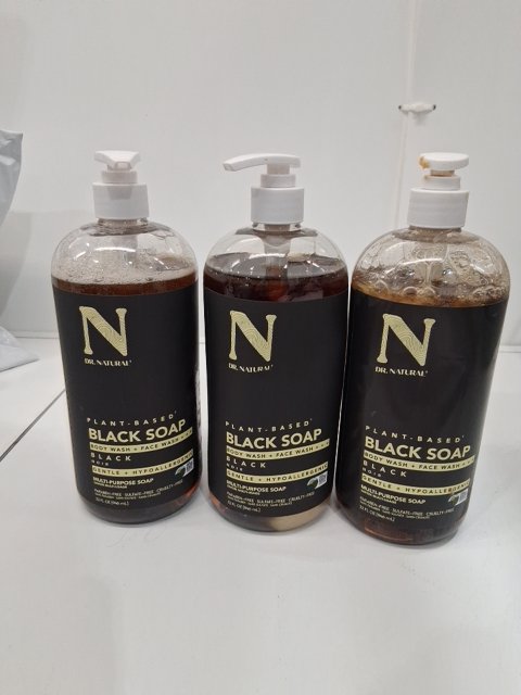 3 Dr. Natural Multi-Purpose Black Liquid Soap Gentle Hand Soap and Body Soap - Deep Moisturizer - 946ML EACH