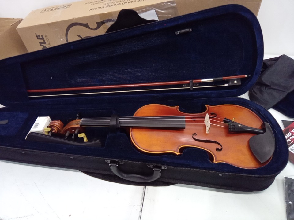 pyle Premium Solid Wood Full Size Violin Set with case and accessories - brown (model: pgviln100)
