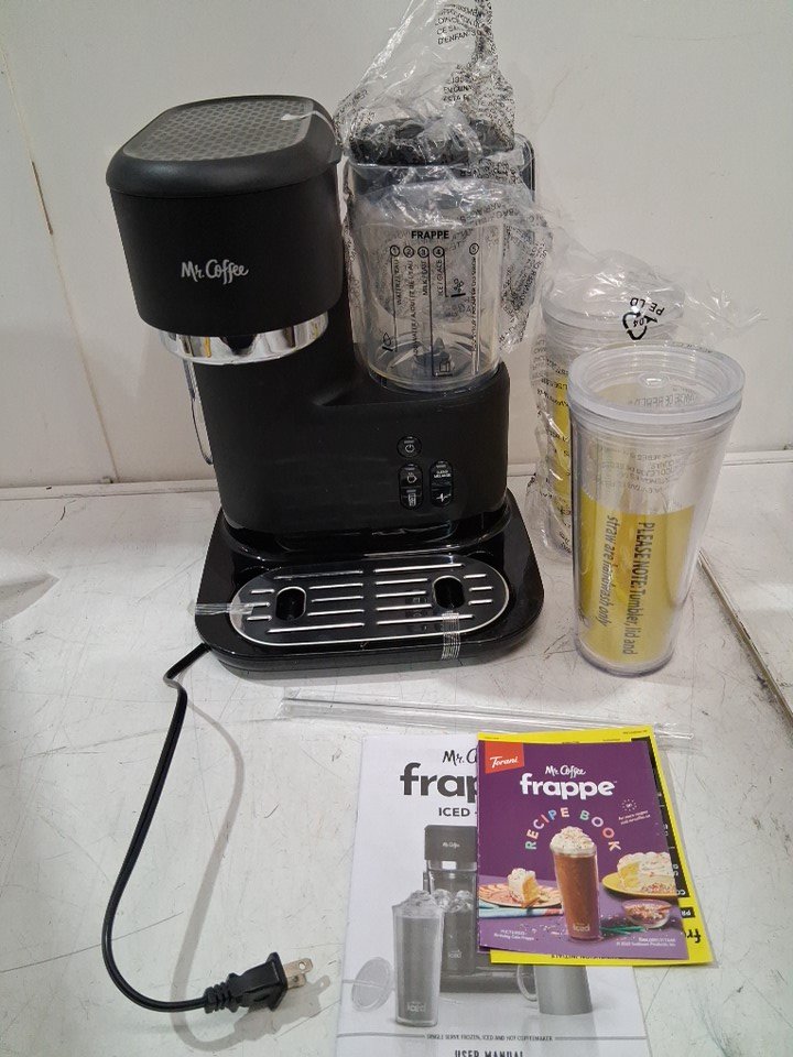 MR. COFFEE ICED & HOT COFFEE MAKER WITH FRAPPE BLENDER and reusable tumbler- BLACK (MODEL: BVMC-FCM-2T-033)