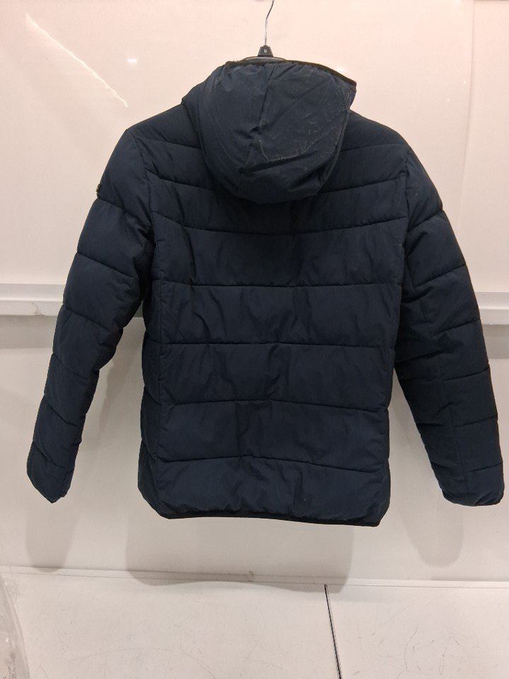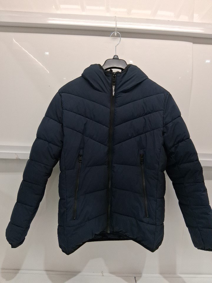 mens calvin klein puffer stretch sherpa hooded jacket - medium - navy - (style:cm155201)