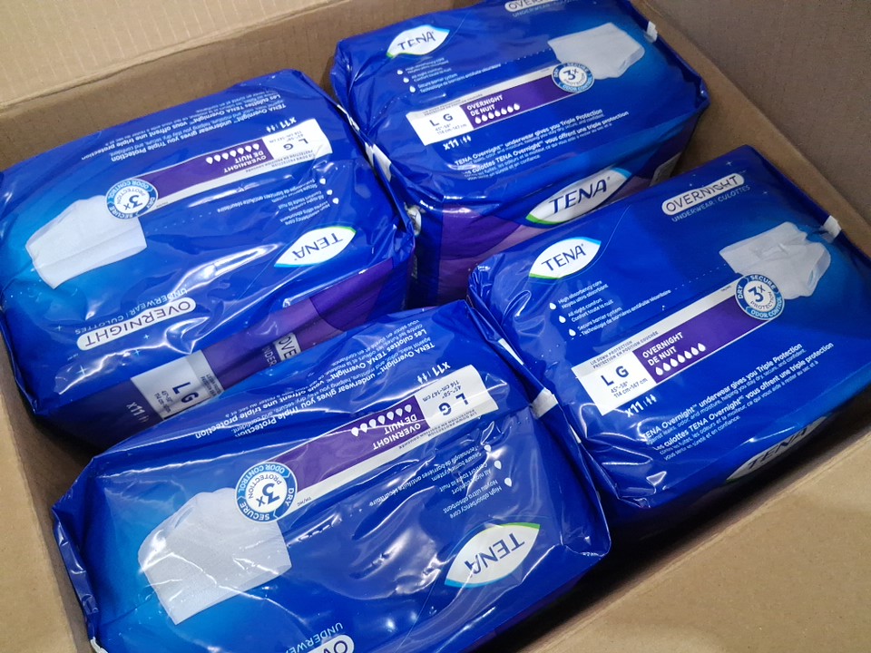 44pk unisex adults TENA overnight Underwear - 3x protection - Large (MODEL: 072312)