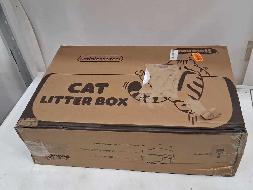 Powools small Stainless Steel Cat Litter Box with Scoop-17.5" x 10.9" -grey (model: pwcmsp808-gy)