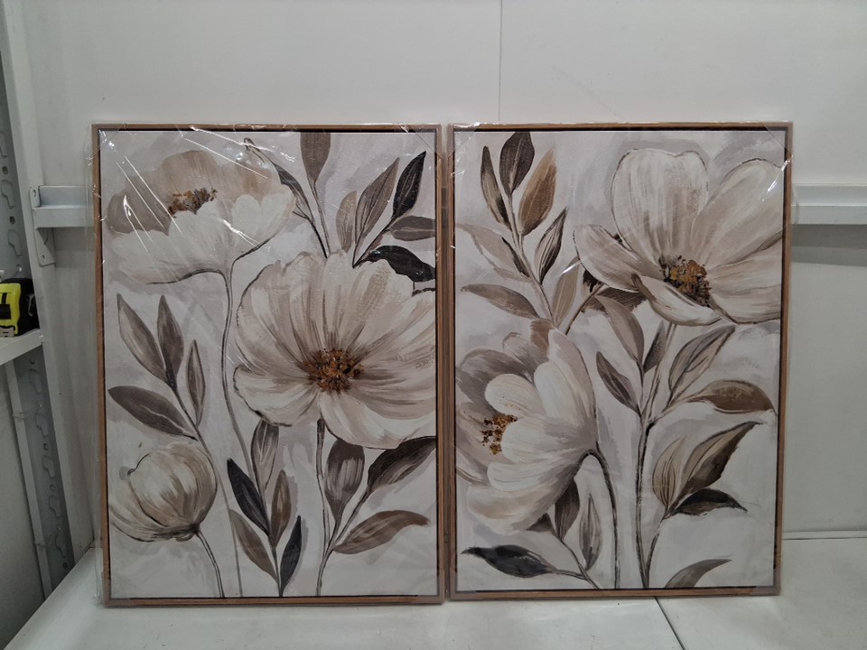 2PC Yearainn Floral Framed Wall Art - 28" x 20" (EACH) - Brown/Grey