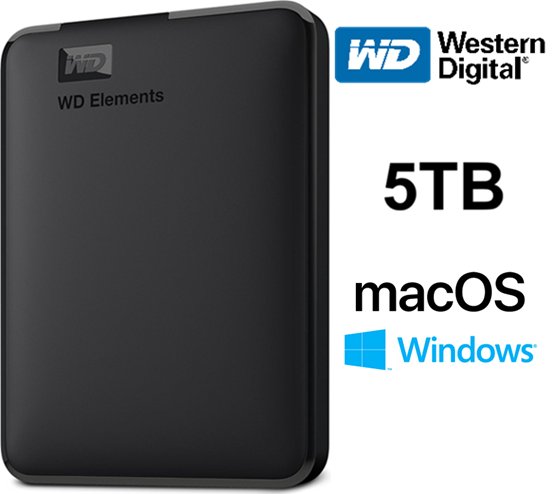 Western Digital Elements Portable External Hard Drive for Windows - USB 3.2 Gen 1/USB 3.0 for PC & Mac - 5TB - BLACK (MODEL: WDBU6Y0050BBK-WESN)