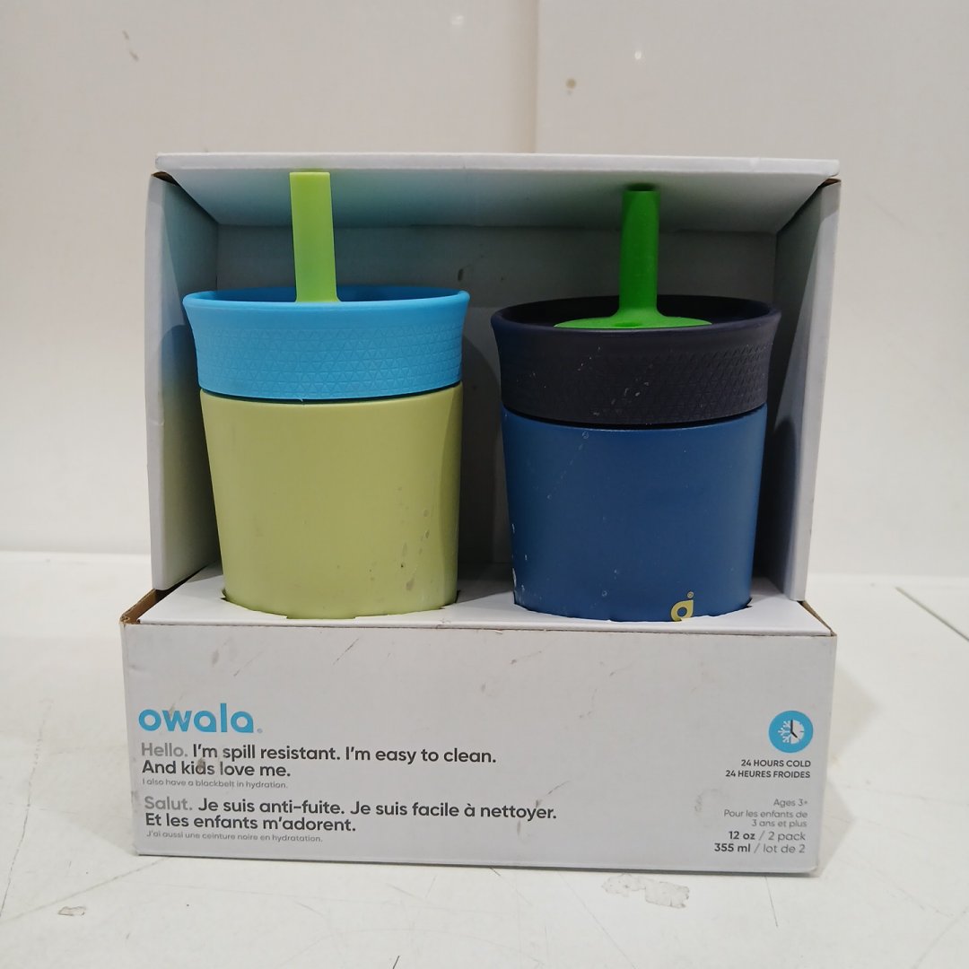 2pk Owala insulated tumbler cups with leak proof straws - 12oz - Green & Blue (Model: 1907841)