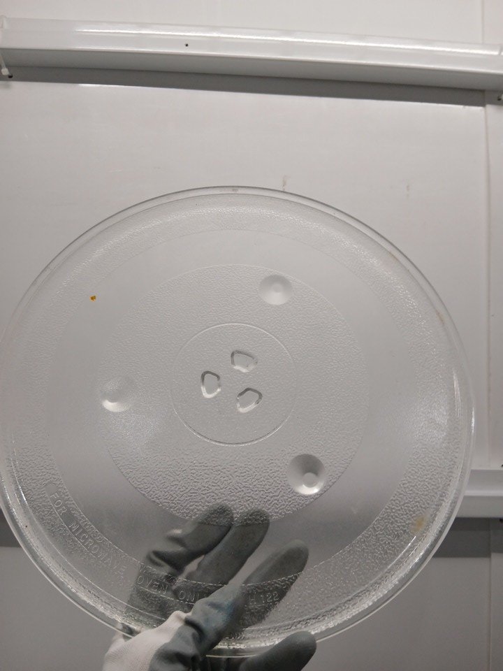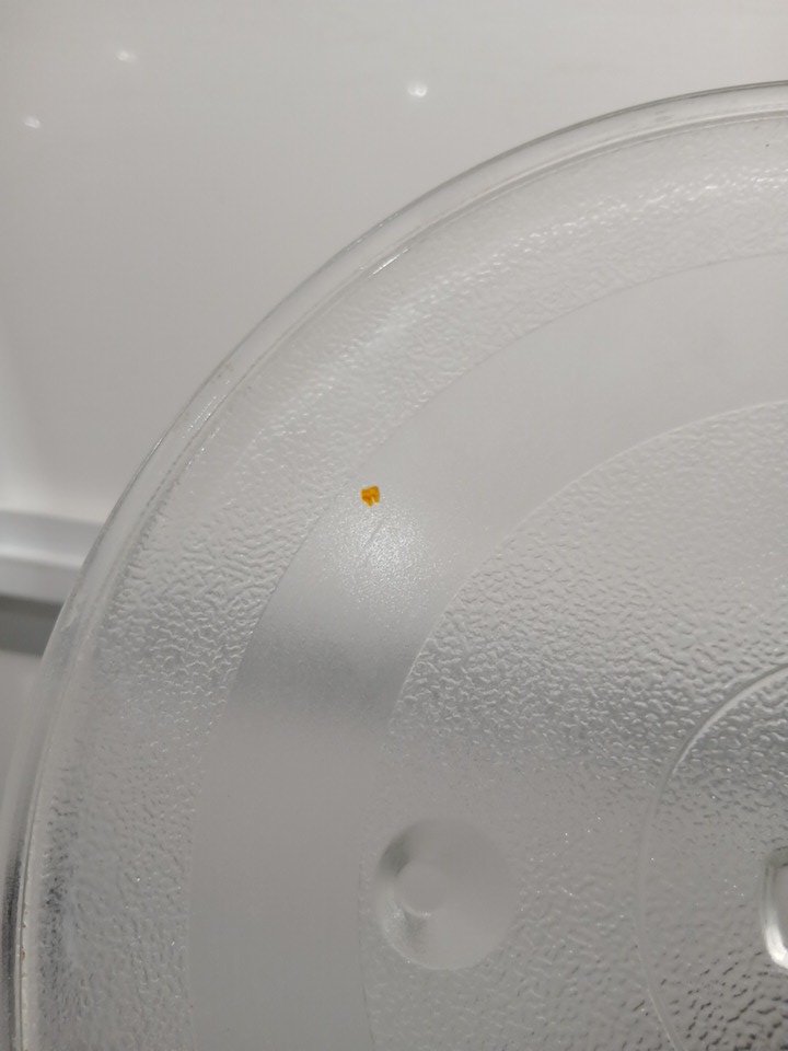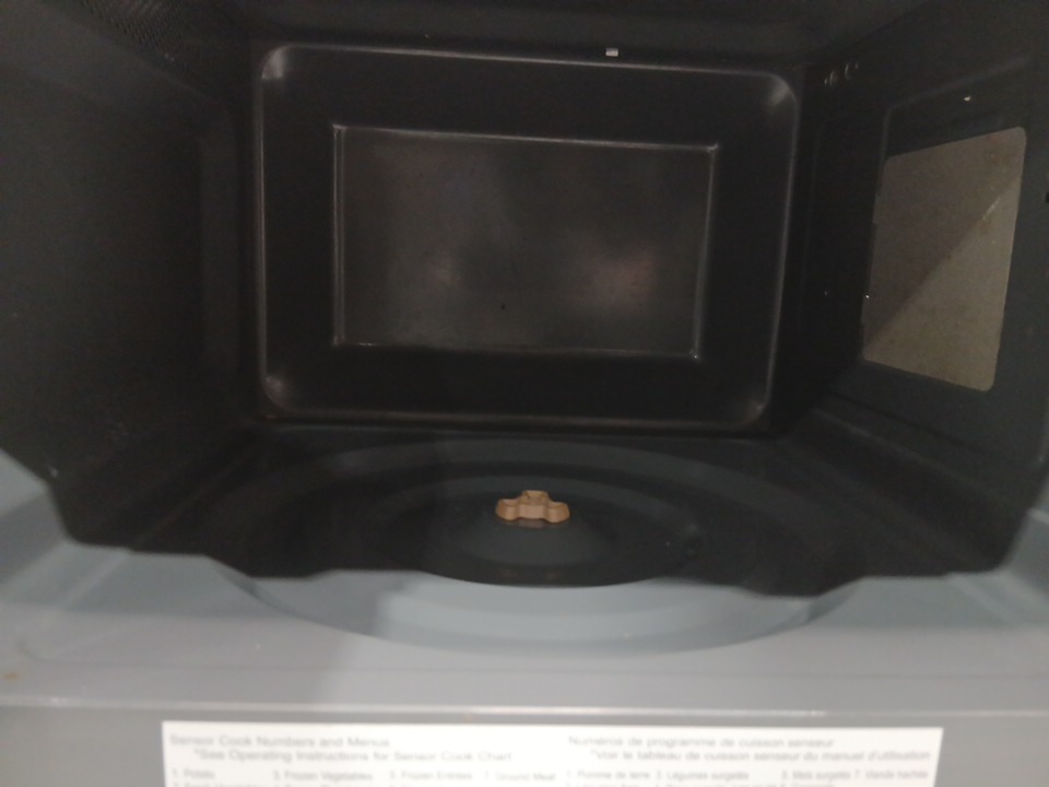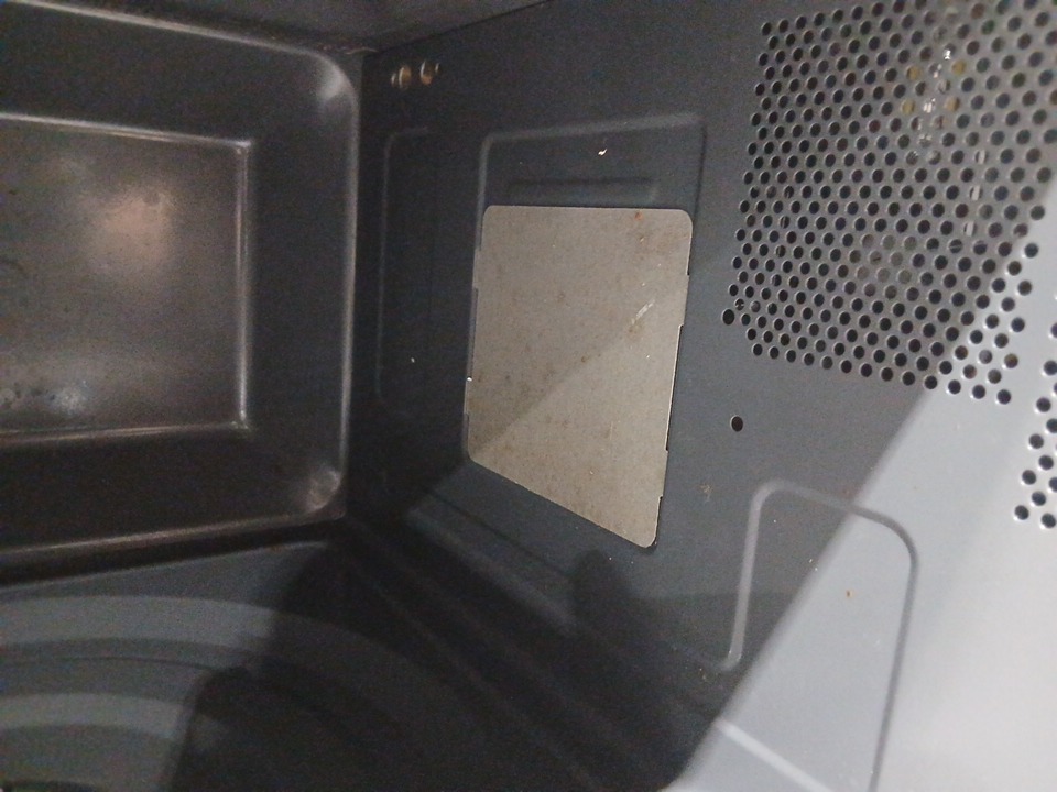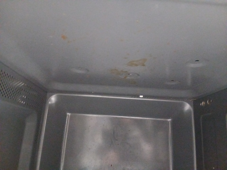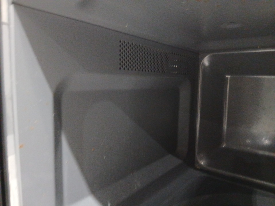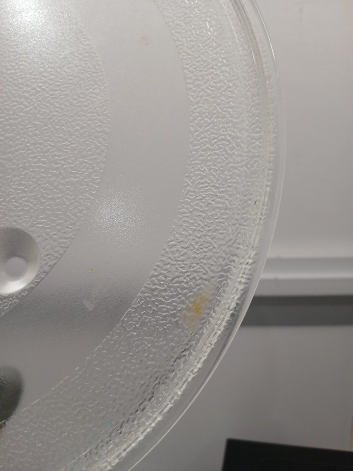 appears lightly used due to food residue and a food smell coming from inside, as well as food marks on the plate and dirt on the wheels.