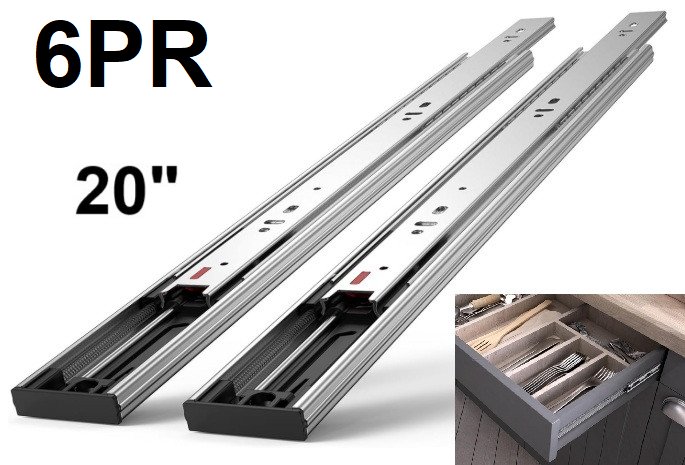 6Pr Soft-Close Drawer Slides Side Mount Rails - 20" (MODEL: ‎4605S2.500-6)