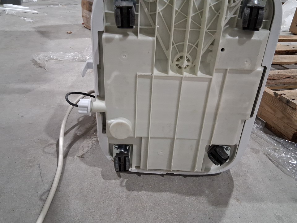 Tested for power Missing remote and additional accessories and add ons small crack at the top and underside, and one of the wheels is pushed in a little making it wobble slightly Wheels are lightly dirty and there are various stains and dried liquids across the surface