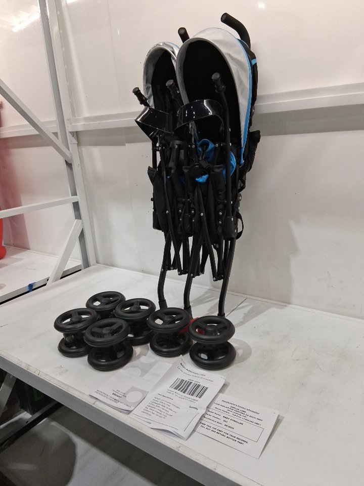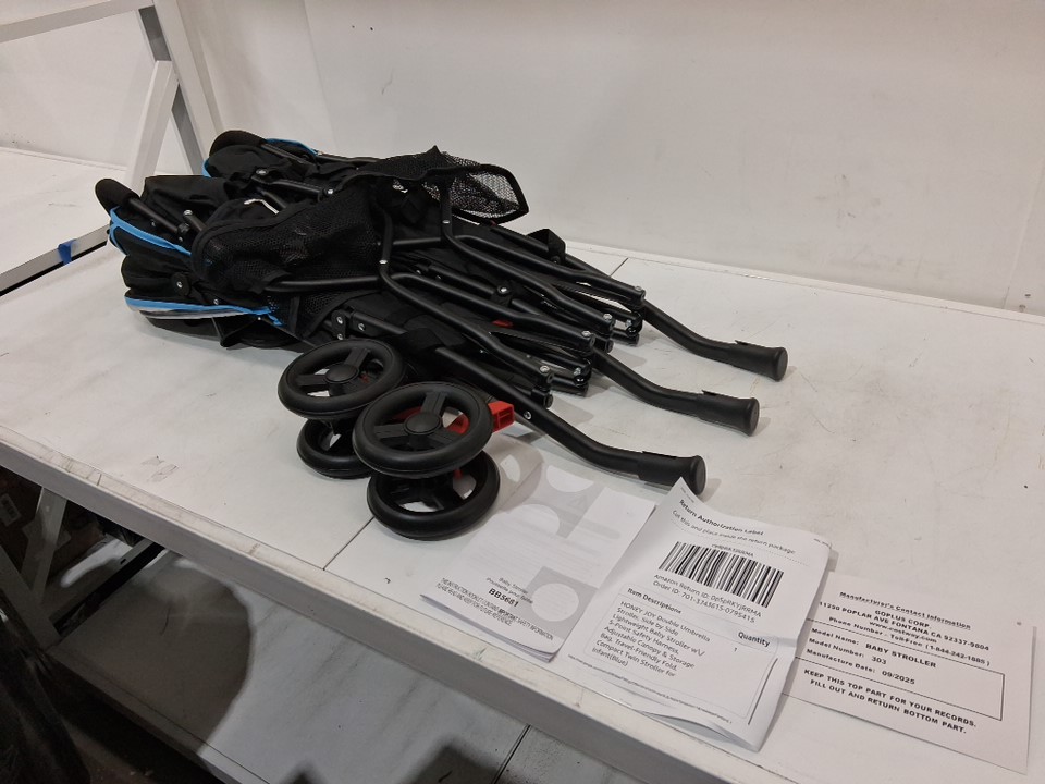 Costway Ultralight Foldable Twin Baby Umbrella Stroller - 31" x 28.5" x 37" - 35lbs max - Black/Blue - (Model: BB5681NY)