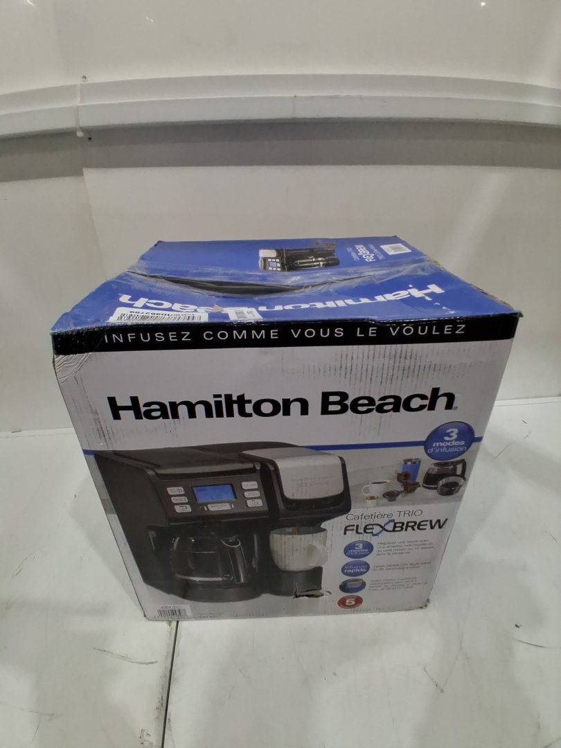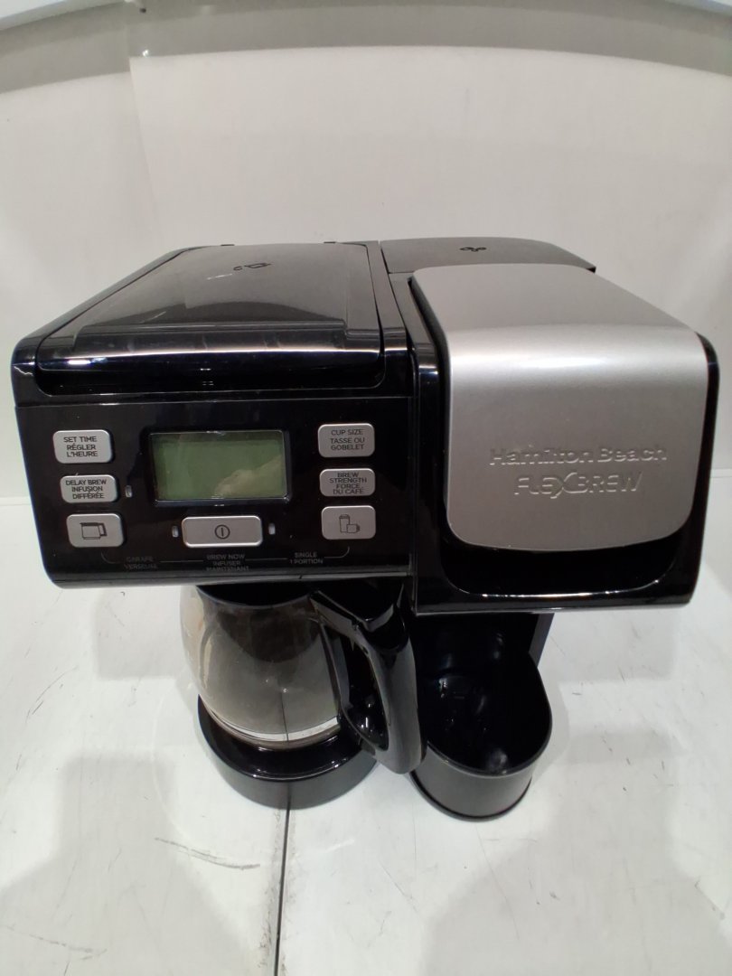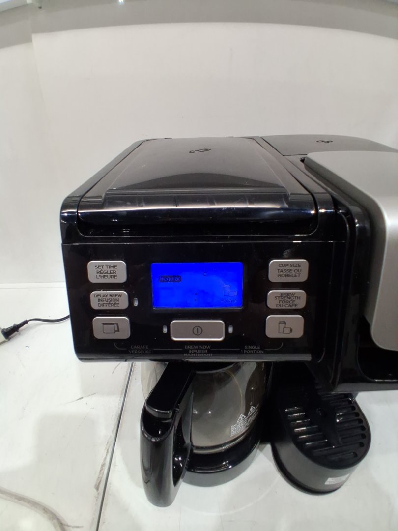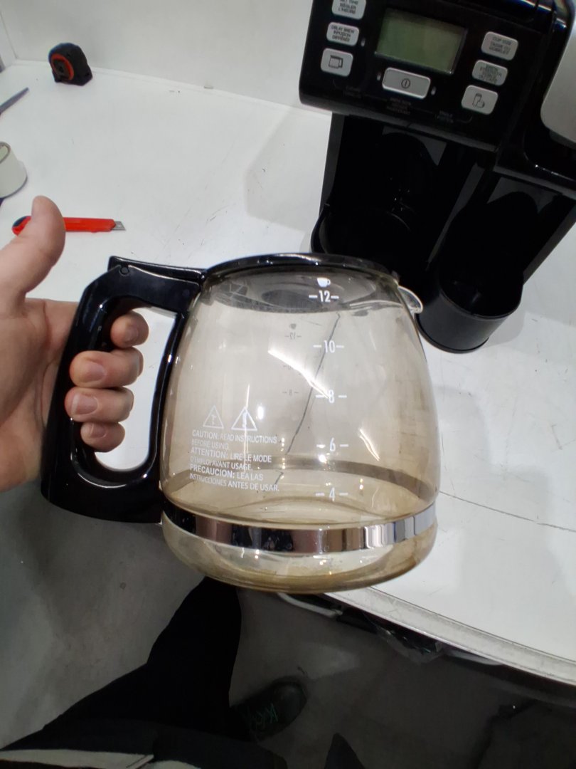 Item shows signs of previous use such as coffee debris stains on multiple pieces of unit. Item tested for power.