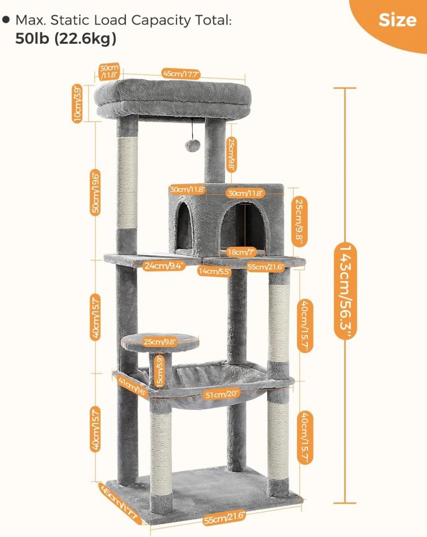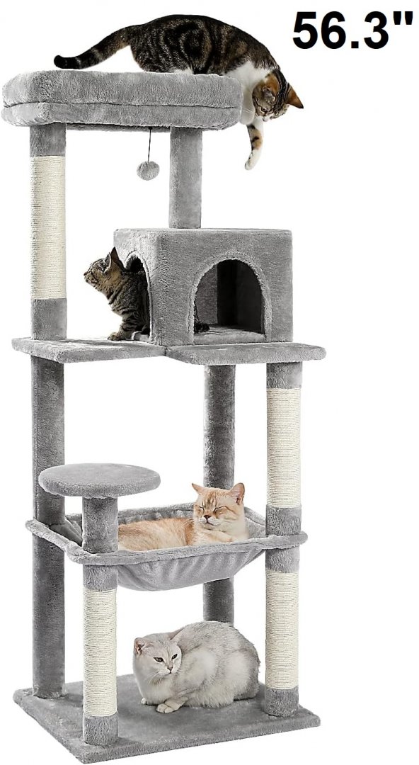 Item has minor pet hairs, light wear on the scratching posts from previous gentle use, see photos.
