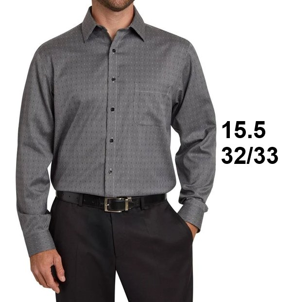 Men's Kirkland signature wrinkle free stain resistant dress shirt - 15. x 32/33 - BLACK /Grey - (Style: 1912666)