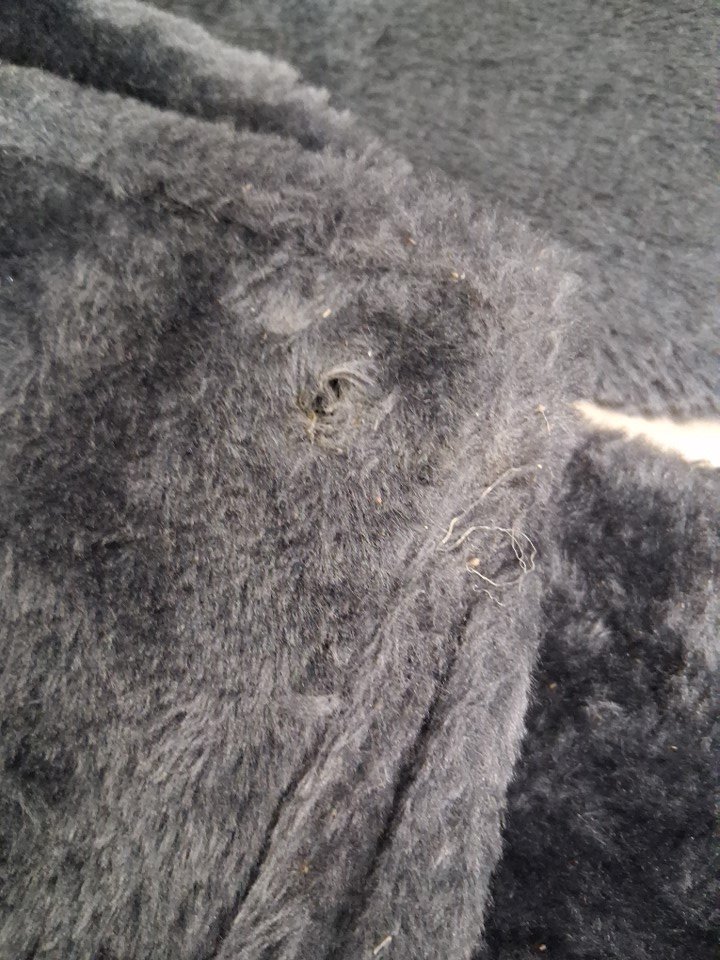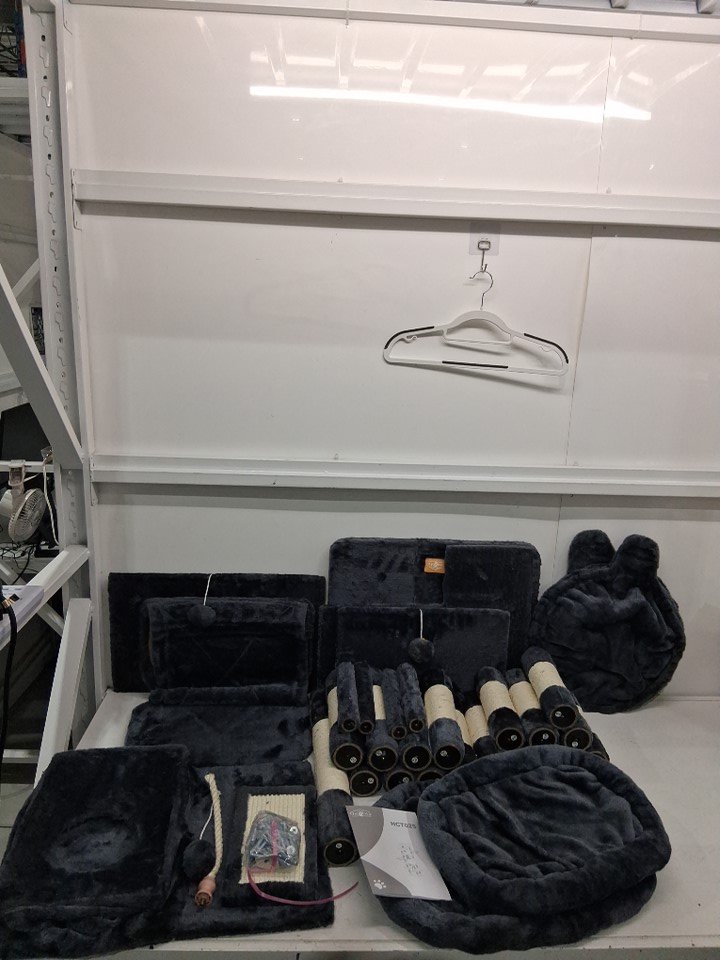 There is one small stain on one of the pieces and there is also a small amount of cat hair. It does not look like the cat tree has been used much and most of the pieces look new.