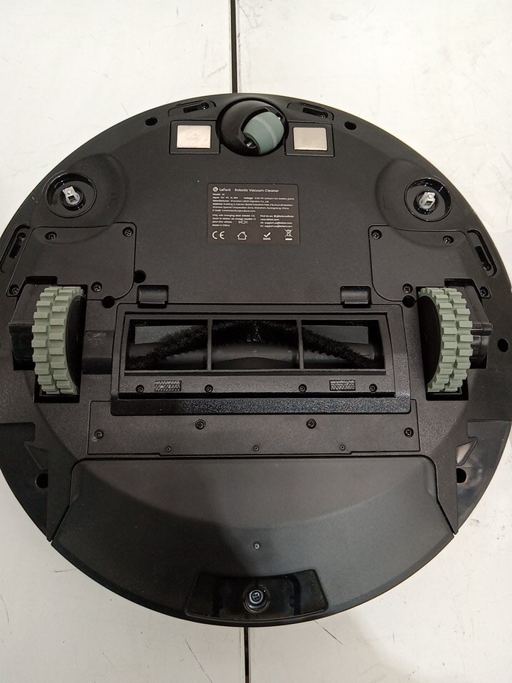 Item shows light signs of being previously used prior to being returned (dirt/debris on/inside item and some minor scuffs/scratches on the housing). Item tested for power, charging and basic operation using the buttons on the robot vacuum. Item marked with issue as it is missing the included side brushes and customer will require purchasing these in order to properly use the item. See attached photos.