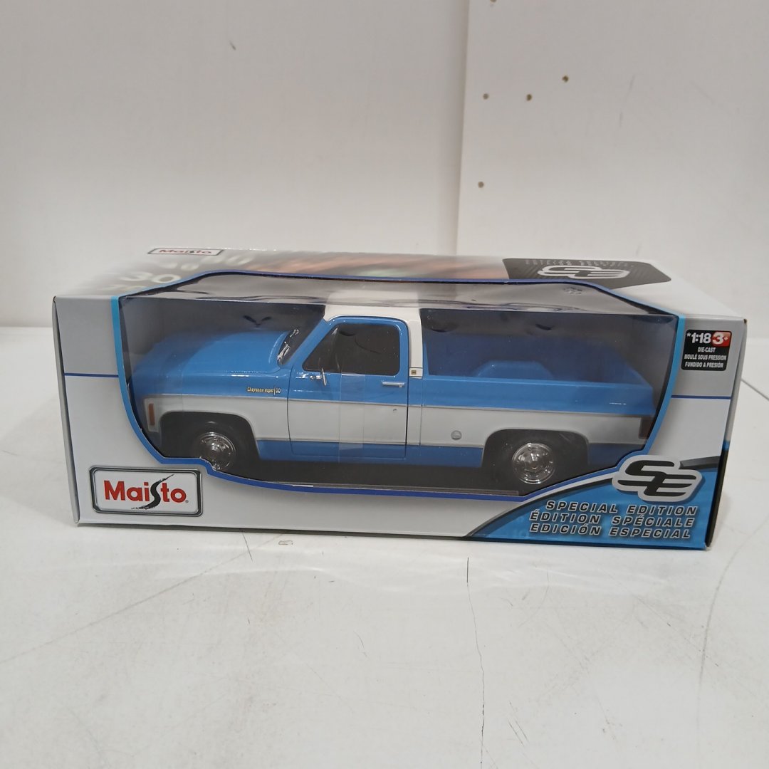 maisto *special edition* 1974 Chevrolet C10 Cheyenne Super Collectible Model Die Cast Truck - 1:18 scale - Blue & White (model: 9897765)