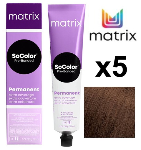 5 MATRIX SOCOLOR PRE-BONDED PERMANENT EXTRA COVERAGE HAIR DYE - 506w light brown warm extra - 85ML EACH