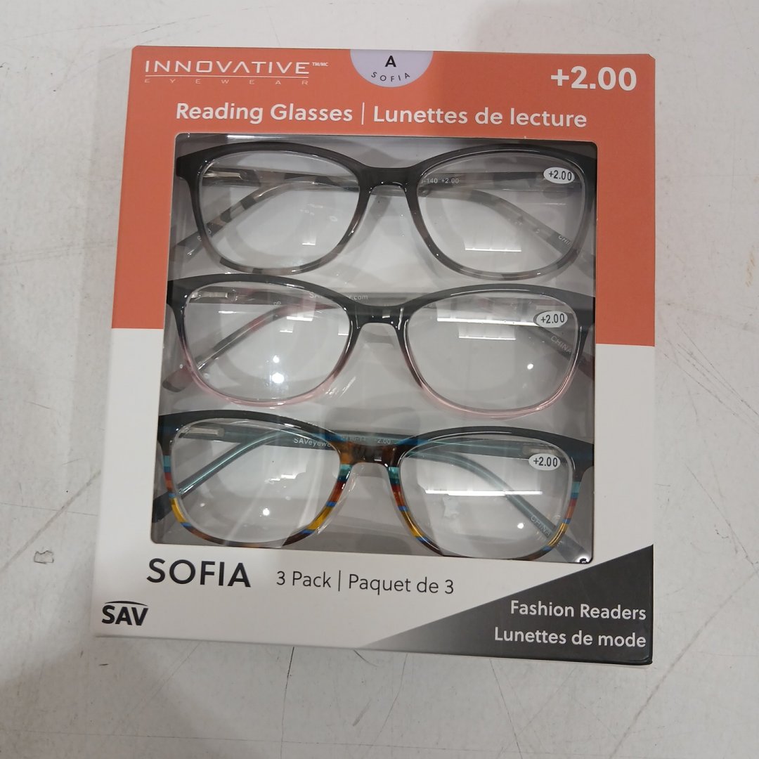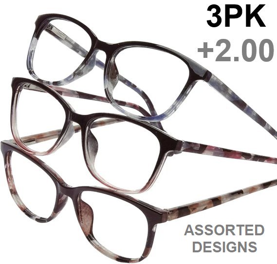 3PK Innovative Eyewear SOFIA Reading Glasses - +2.00 - Assorted Designs (Model: 8851200)