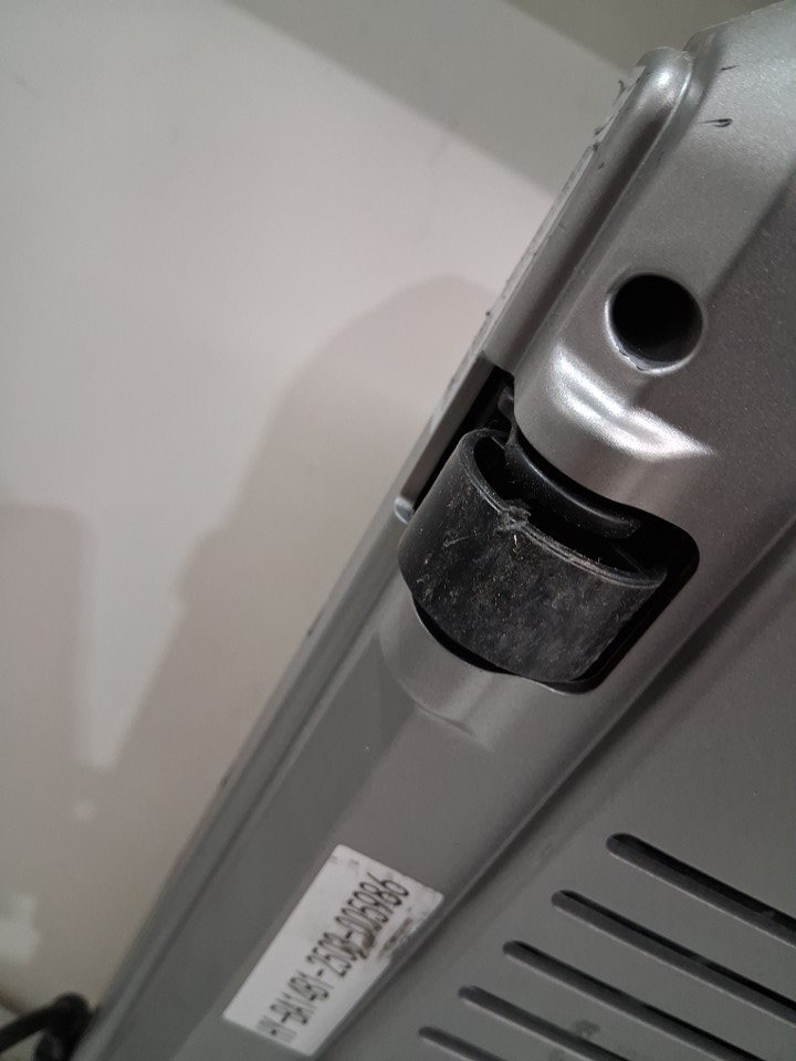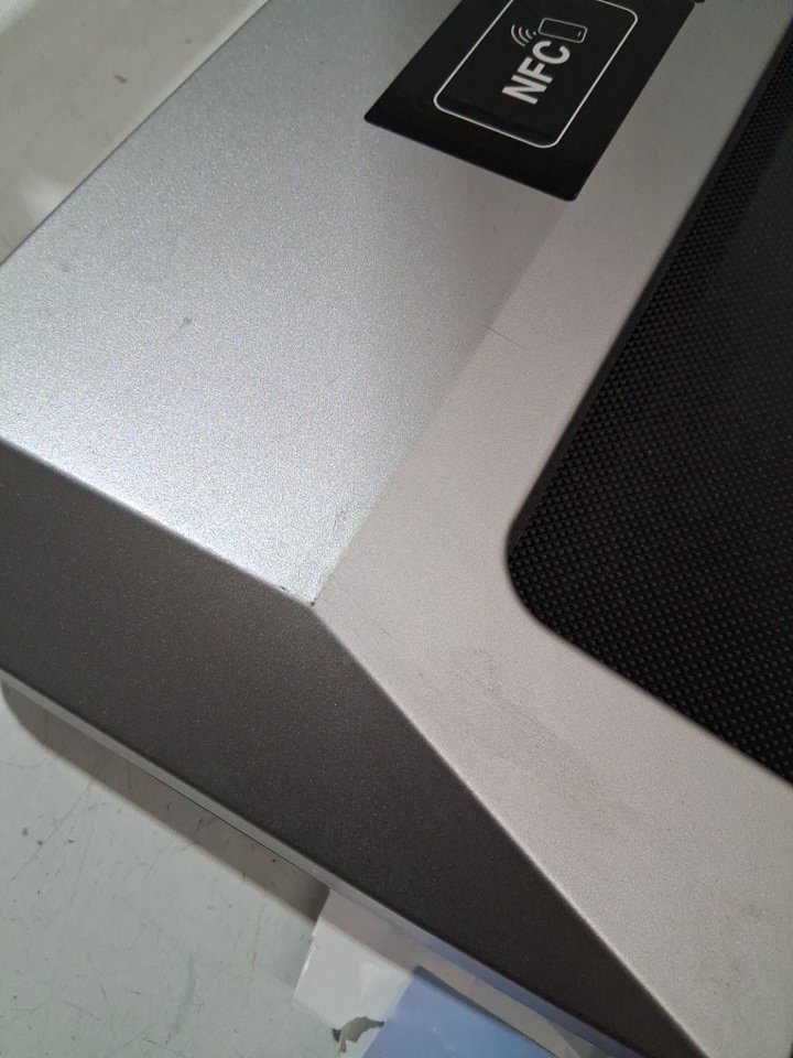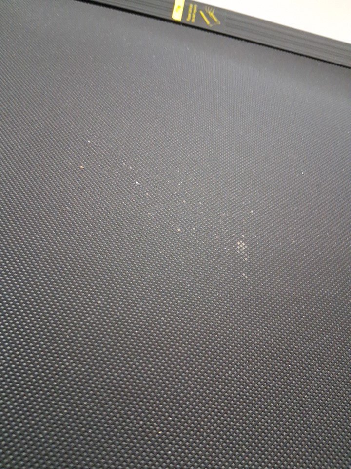 item has some light scuffs around front and wheels as well as some light dust on walking pas from previous light use