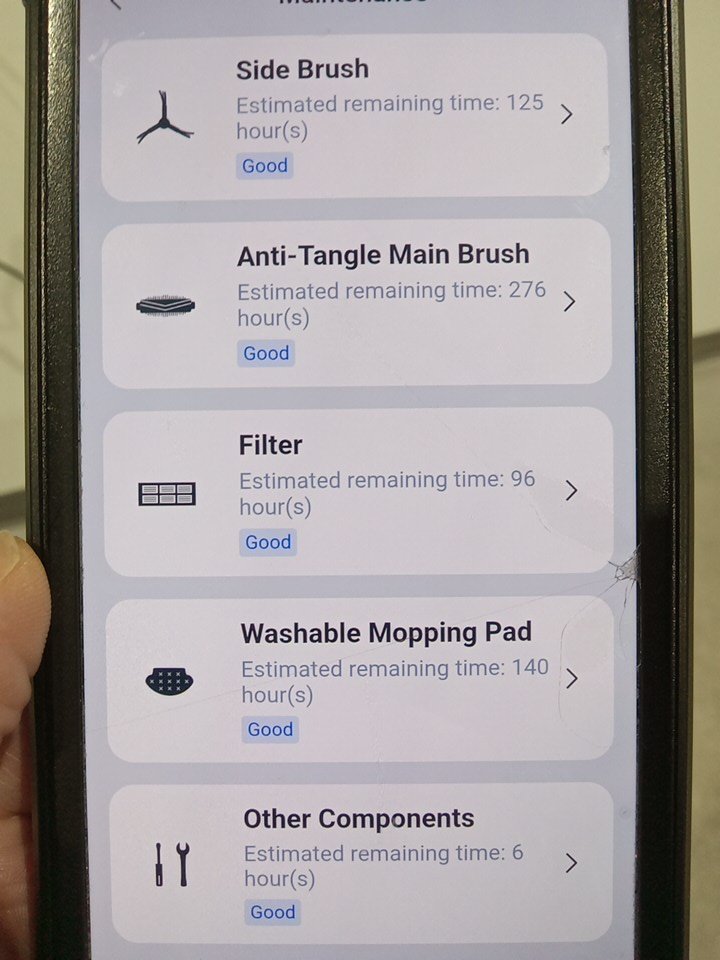 Item tested for power, charging, basic functionality, wifi/app connectivity. Item shows light signs of being used, some light wear on the brush, side brush, some dust/debris on the base station and robot vacuum. See attached photos for everything included with this item.