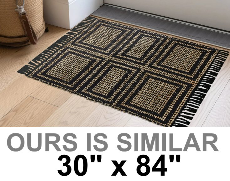 jute line rug runner for indoor use - 30" x 84" - black/brown