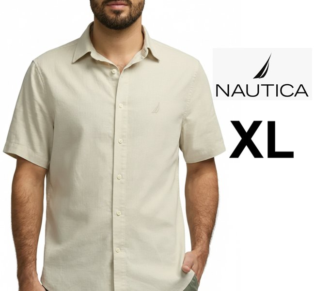MEN'S NAUTICA short Sleeve Linen Button Down Shirt - EXTRA LARGE - beige (STYLE:187265)