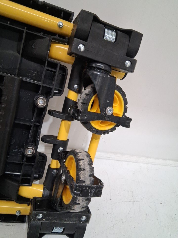 Item has some dirt marks/scratches/scuffing and some wear on wheels from previous use, see photos for reference.