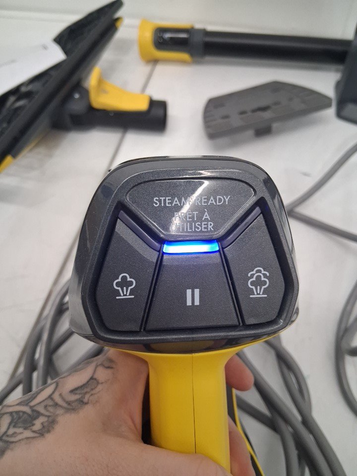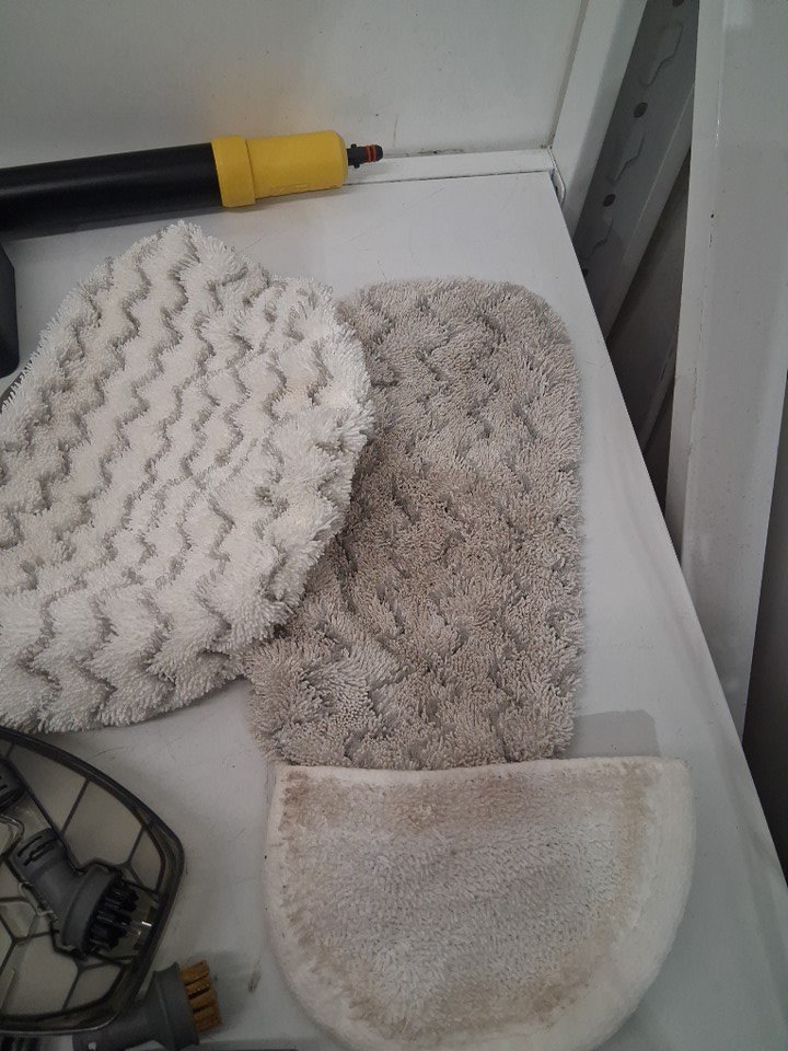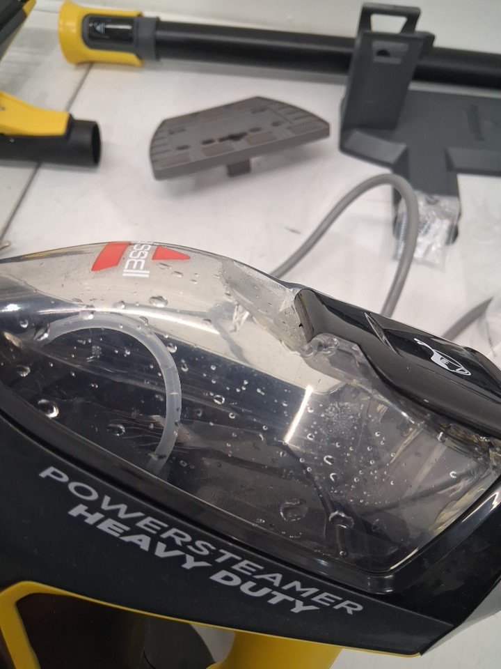 steamer pads have dirt discoloration and water chamber has water drops in it. HAs beentested power