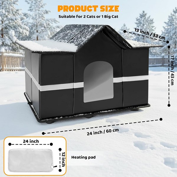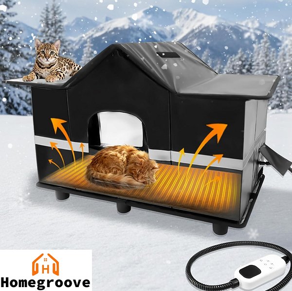 Homegroove Large Weatherproof Insulated Heated Outdoor Cat DOG ANIMAL House - 59°f to 140°f - black