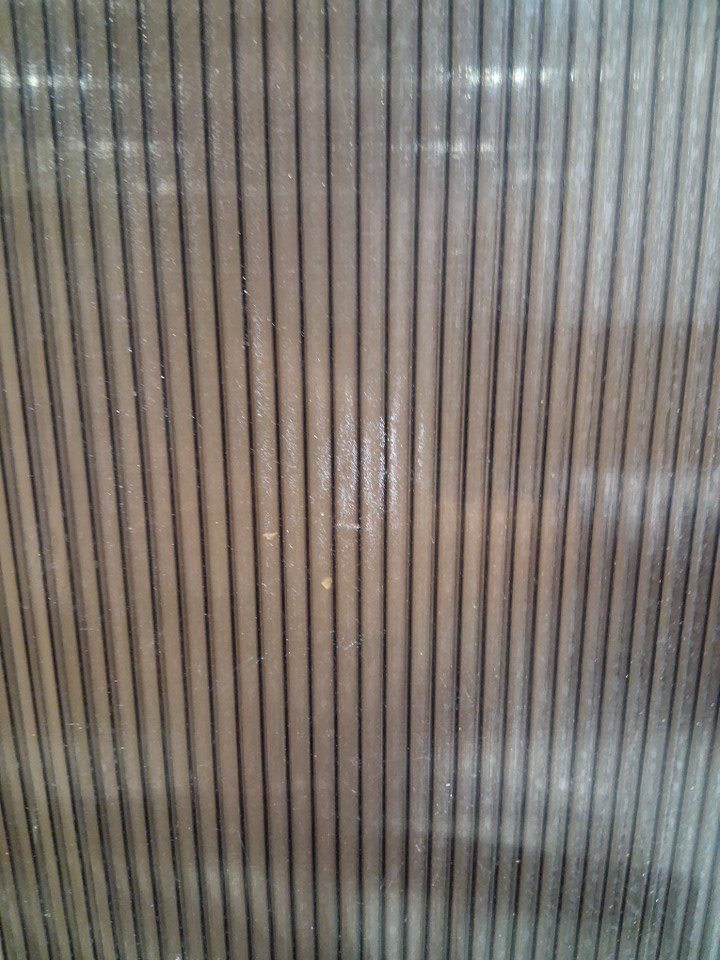 Item has marks and scuffs from shipping. Also, it's missing few hardware parts. (See photos)