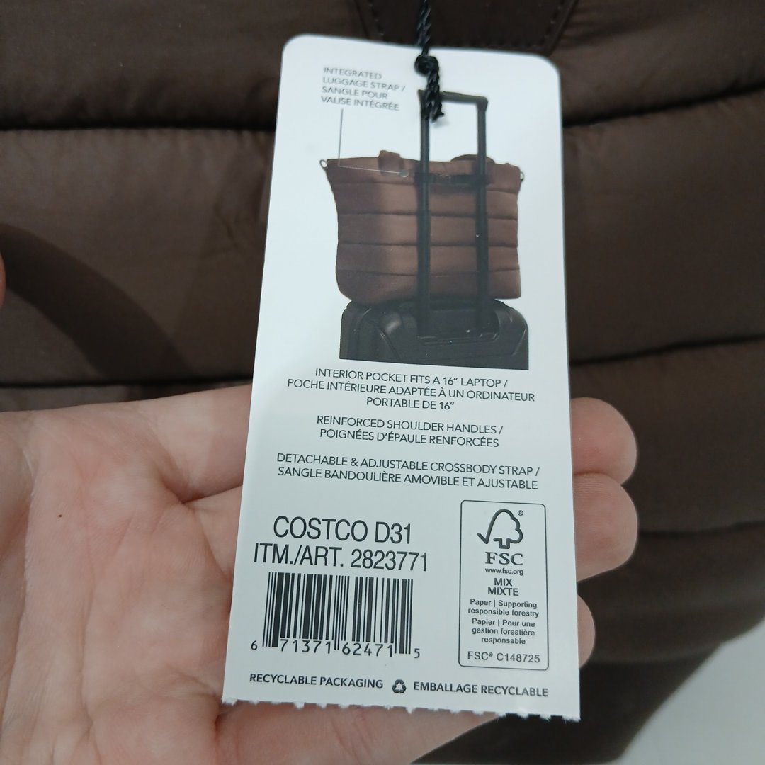 LOLE Quilted Puffer Tote Bag - Fits 16" Laptops - Brown (Model: 2823771)