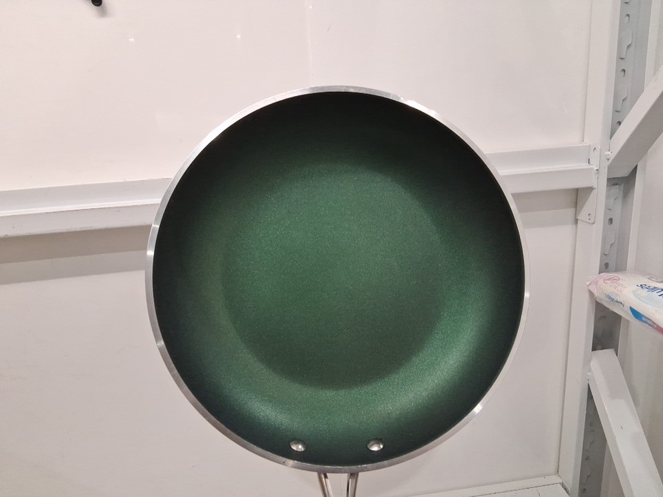 Product has some light scratches on the bottom of pan and some light residue on sides (See photos)