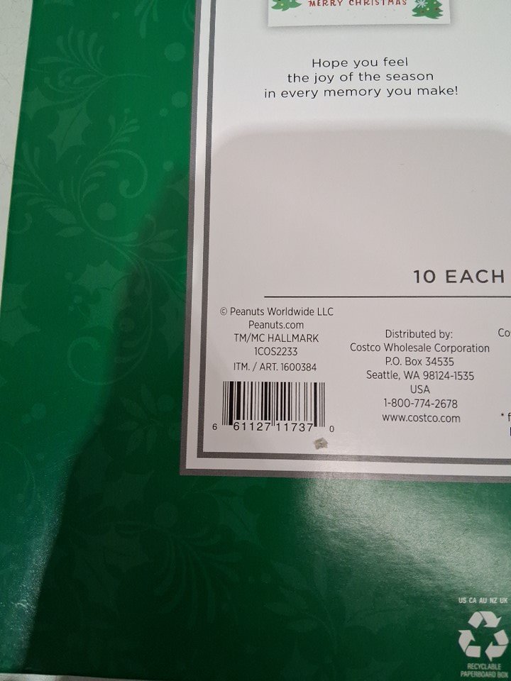 40PK HALLMARK HOILDAY PEANUTS CARDS - VARIOUS COLORS (MODEL:1600384)