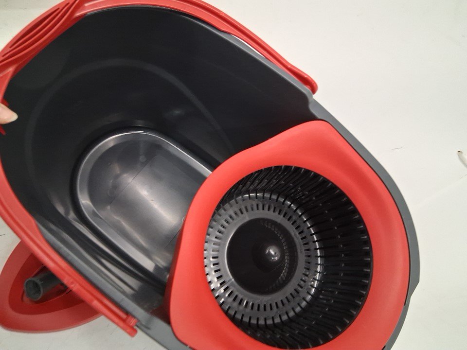 VILEDA EASYWRING POWER SPIN BUCKET SYSTEM WITH EXTENDABLE POLE and mop head - 22" to 48" - GREY/RED (MODEL: 172880)