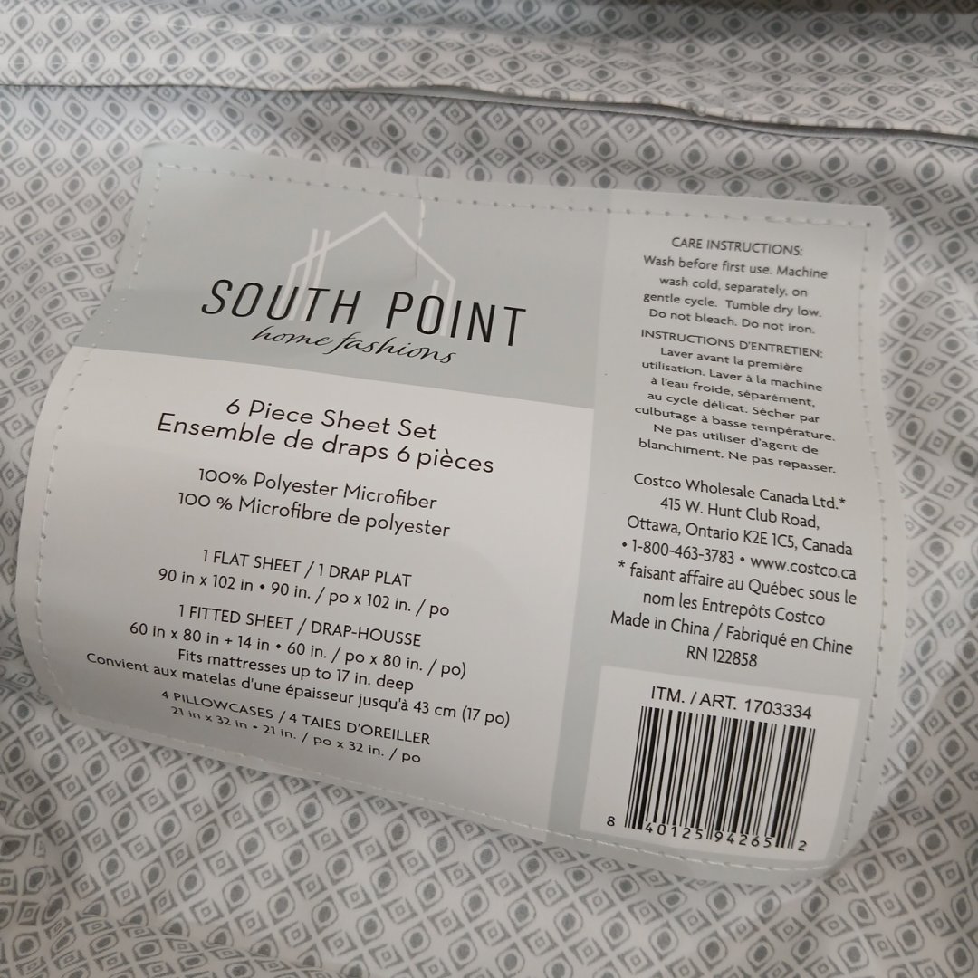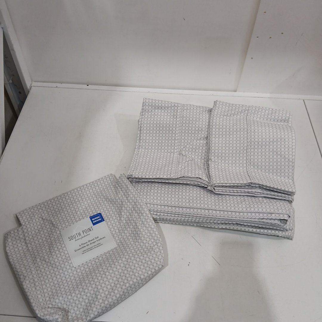 6pc South Point Home Fashions ERNESTO TILE PRINTED MICROFIBER sheet set - fitted sheet / flat sheet / 4 pillow cases - queen - Grey, Off-White (style: 1703334)