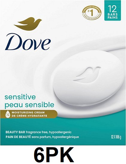 6pk dove sensitive moisturizing cream hypoallergenic soap bars - 106g each - fragrance free