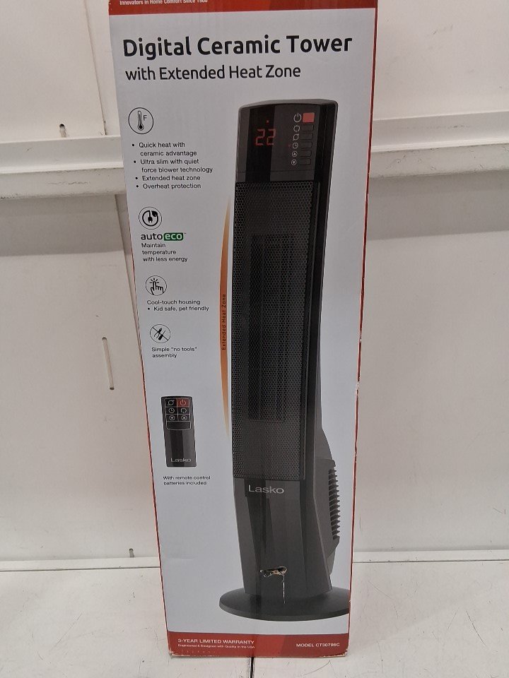 Lasko Digital Ceramic Tower Heater with Remote - 32" - BLACK (MODEL: ct30796c)